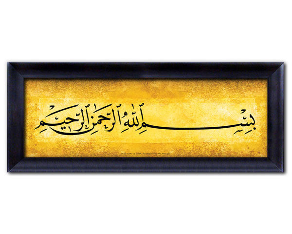 Framed Faux Canvas Frame: BISMILLAH. Overall Frame Size 33 x 13 inches.